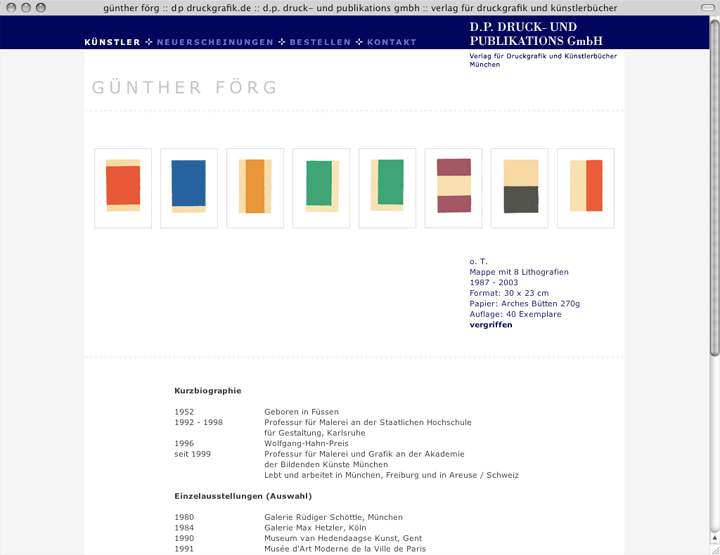 ------ d.p. druck- und publikations gmbh / -------- internetauftritt druckgrafik, künstlerbücher ------ status: online 2006 - 2009 ---