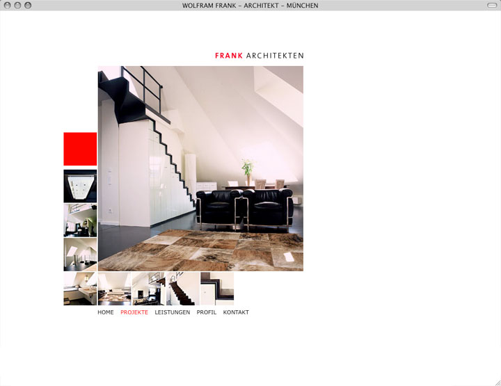 ------------ frank architekten / --------------- internetauftritt architekturbüro ---------------------------------- status: online - 2009 --- ------ konzept, design und programmierung: petra fürst ------------------------------------------------------------------- --------------------------------------------------------------------------
