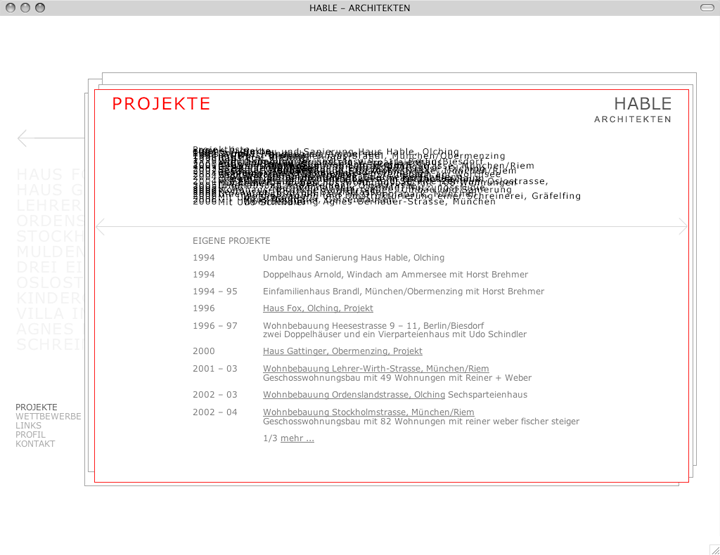 ------ hable architekten / ---------------------- internetauftritt architekturbüro ---------------------------------- status: online --- ------------- konzept, design und programmierung: petra fürst, christine zoche ----------------------------------------------- -------------------------------------------------------------------------------------------------------------------
